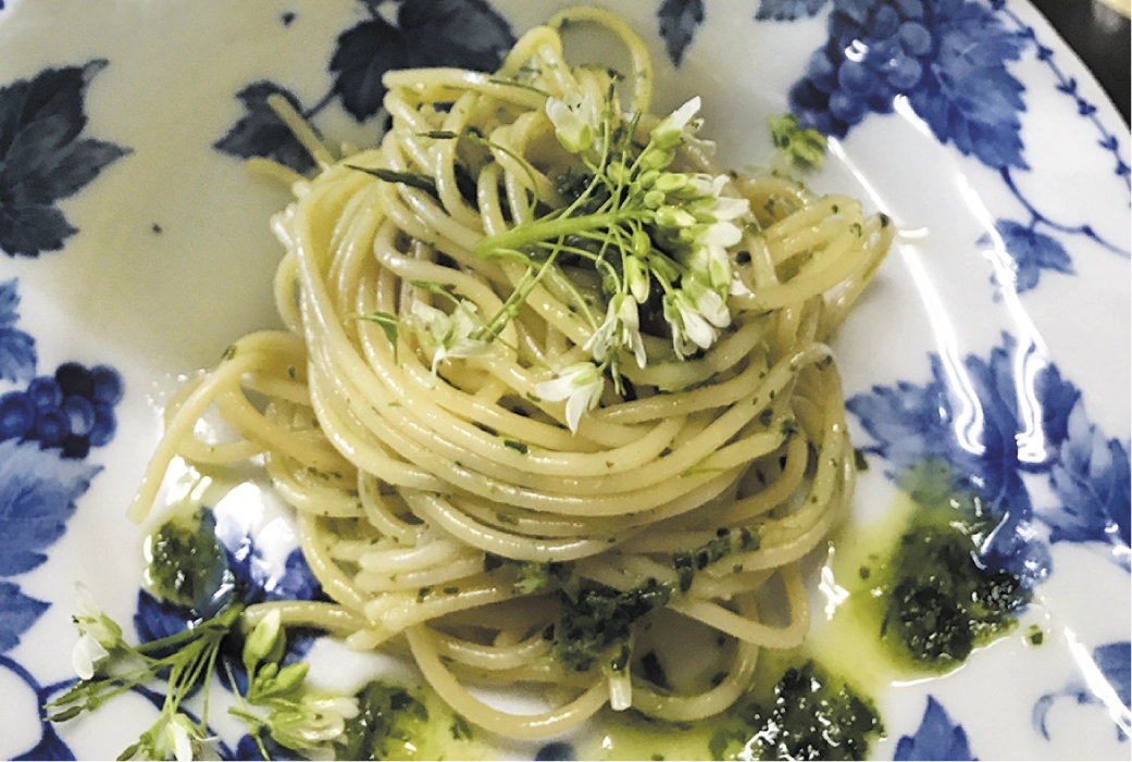 3.茹でたパスタに2を絡めて、わさびの花と葉を添えれば、あっという間に美味しいパスタに。